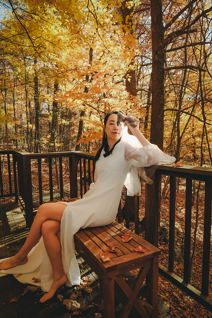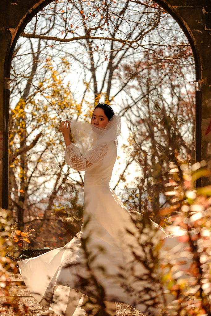 The photoshoot location is Overlook Mountain House Ruins in New York.