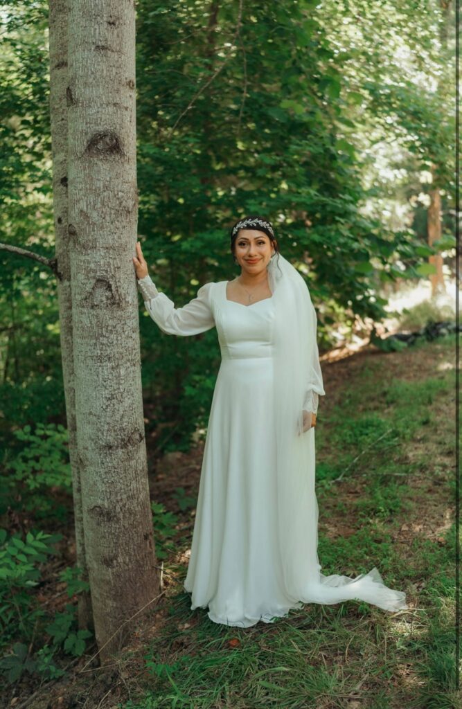 I don’t know where to begin! I stumbled across this beautiful Gabriella dress while looking for my upcoming wedding this fall; and immediately knew it was what I wanted. I am plus sized so I had to measure on my own and send in my numbers to Aleksandra; however, she made the process super simple. She had videos and worksheets, and made herself available for any and all questions. The dress came out beautifully and she made what should have been a stressful process, a breeze! I’m so excited for my fiancé to see it, thank you!