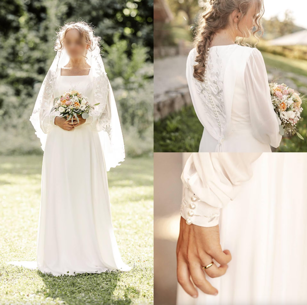 The dress was absolutely beautiful, I knew the moment I saw it that it was the one for me. The delicate lace and beautiful buttons were crafted with such care, and it made me feel very comfortable and special on my wedding day! Aleksandra kindly supported me, ensuring it arrived early without customs fees! Heartfelt thanks for this wonderful wedding dress!