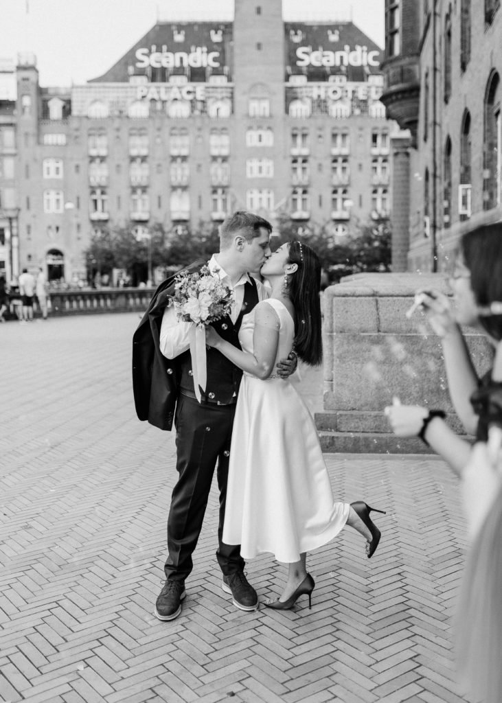 Despite wearing and loving bling my whole life, when I saw this stunningly simple wedding dress by Piondress on Etsy, I knew it was the one. My husband and I were doing our small Civil ceremony with only our closest family and friends, and I wanted an elegant, chic and simplistic tea-length dress, and it was sort of love at first sight. I did add the bling in my own way, by adding a belt at the waist, but the dress was such an incredible choice and a huge success. On top of all that, when I finally wanted to purchase it, Piondress had just pulled it out of production, but when I reached out personally, they were more than happy to make one for me to my measurements! It fit like a charm and it was so easy to tailor as well – as I asked for the full original length in order for me to shorten it in person. In any case, Piondress went above and beyond to help me get my dress civil ceremony dress – it’s often hit and miss on Etsy, but Piondress is the real deal. Quality, service and craftsmanship come together and they are so nice too. Looking back on that day, everyone still showers me with compliments and I would pick that dress every single time.
