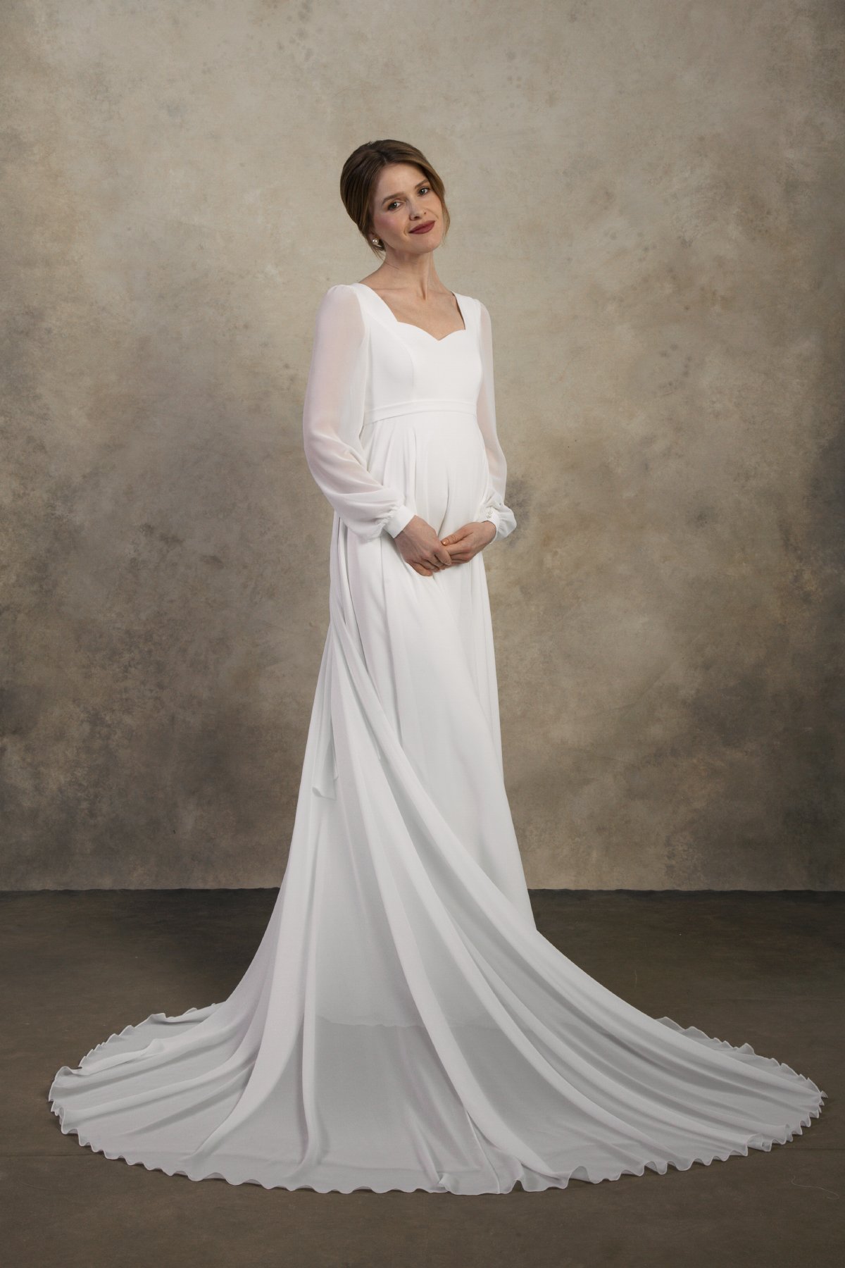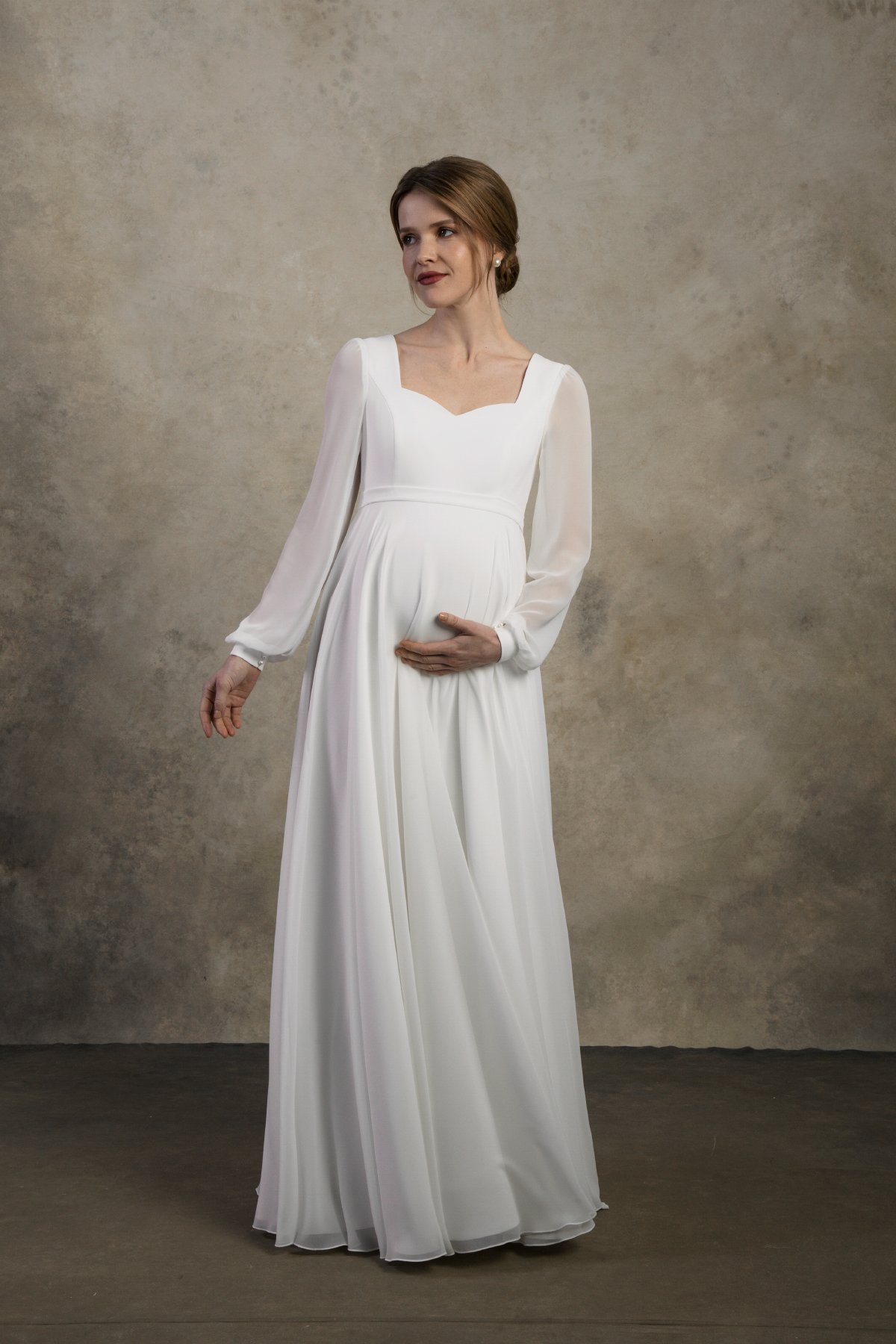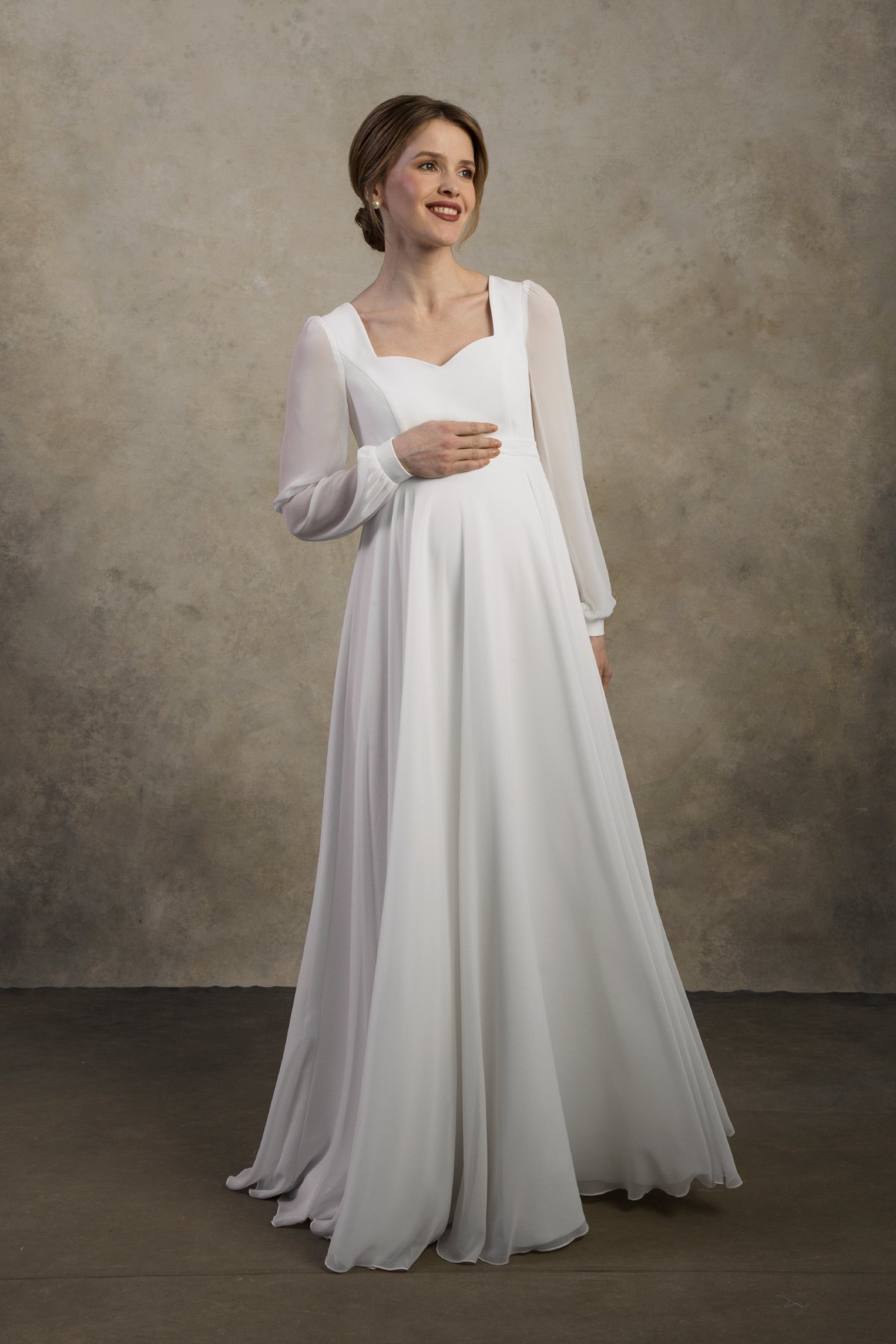 Maternity wedding dress with chiffon sleeves and empire waist – Clarissa