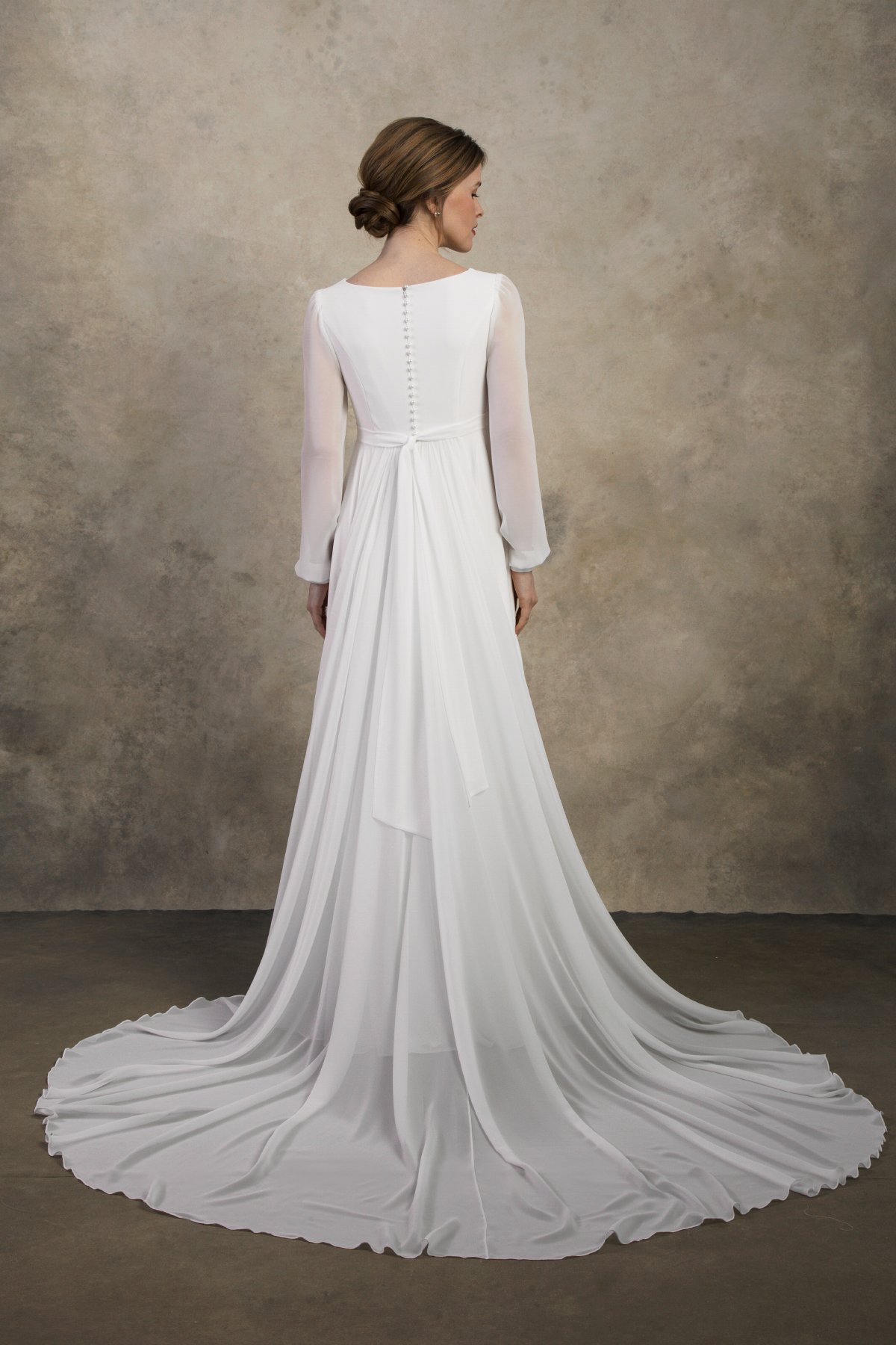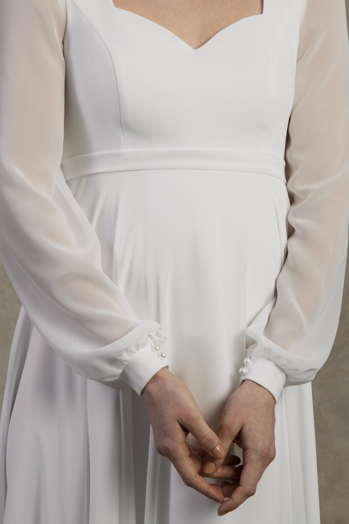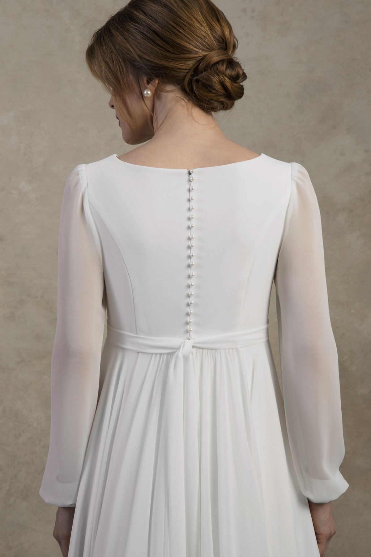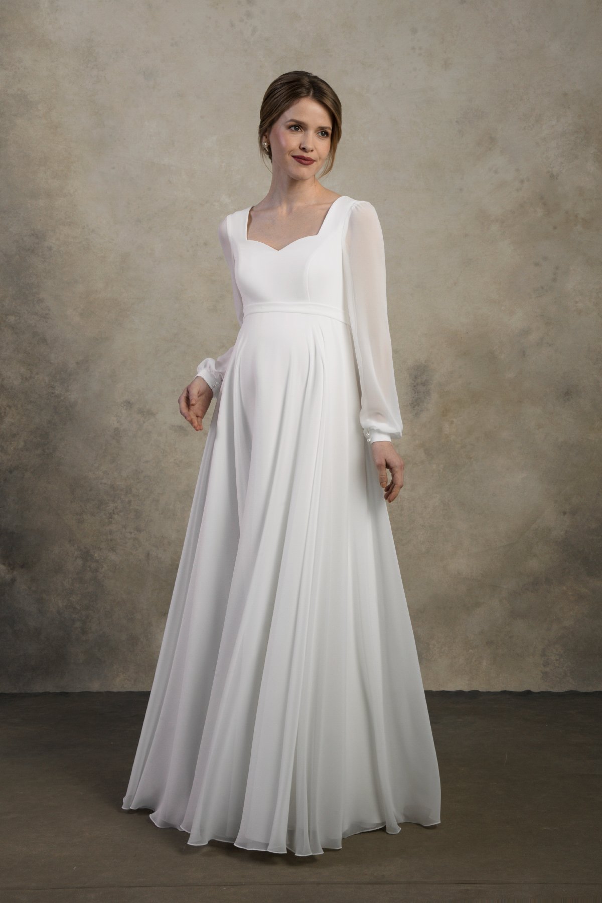 Maternity wedding dress with chiffon sleeves and empire waist – Clarissa