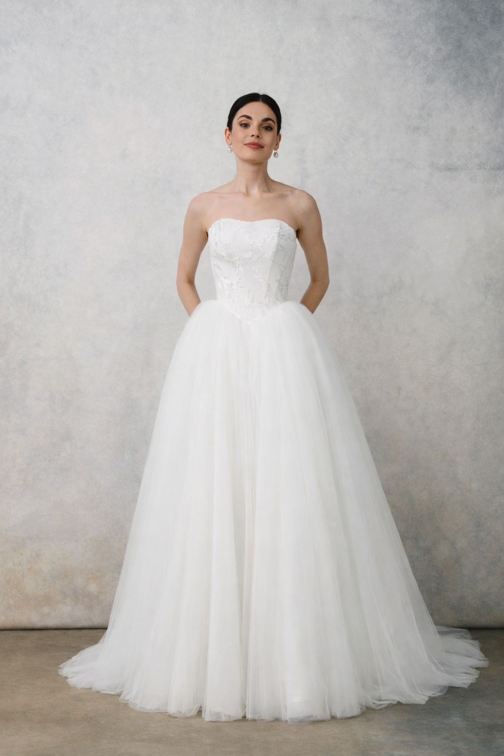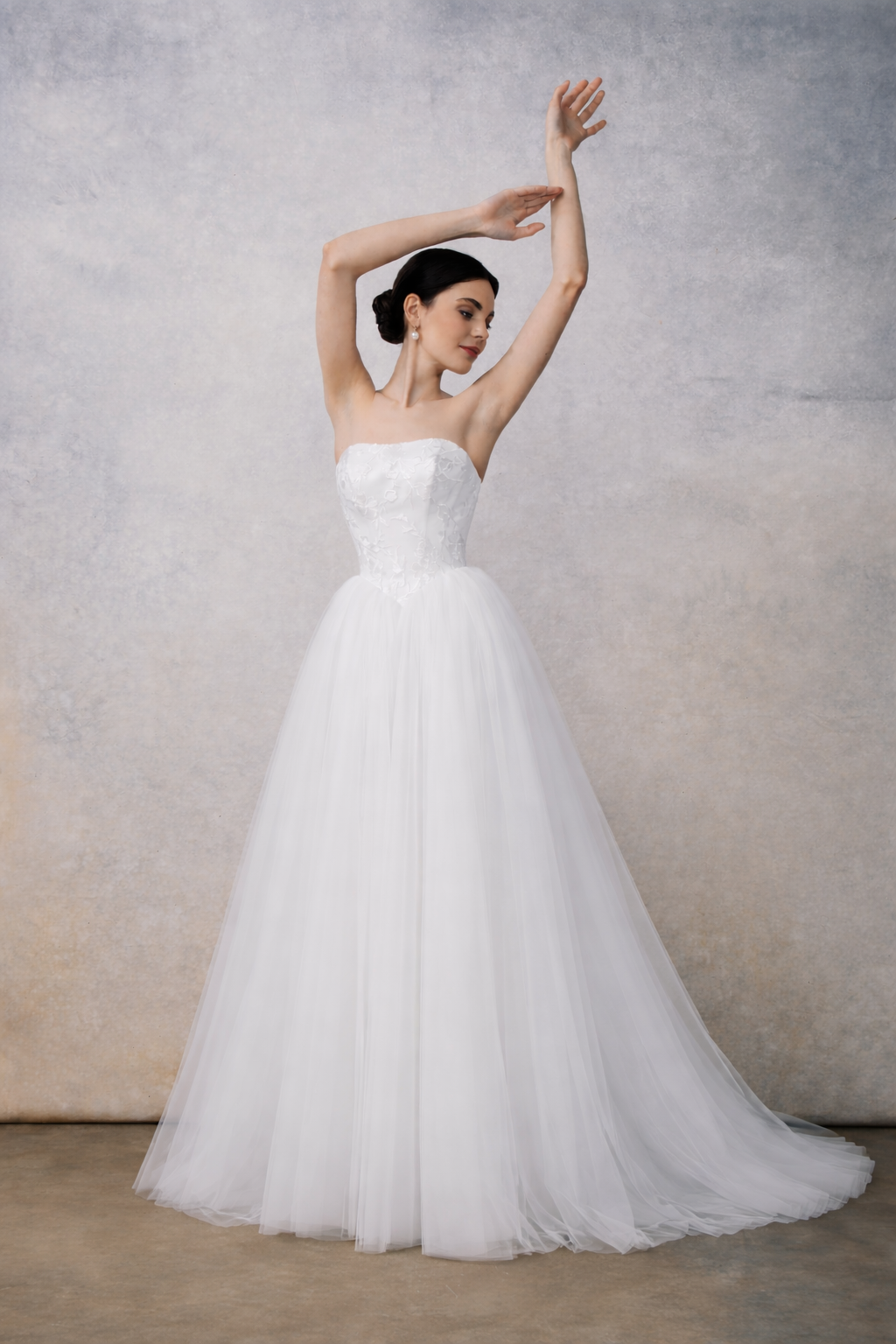 Strapless Wedding Dress with Tulle Skirt and Embroidered Bodice – Faith